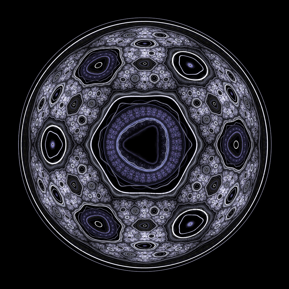 フラクタル図形を球体に見せかける事で私たちはそこに新たな意味を感じることができます。これら球体はリズムを生みだし、そこにある存在を感じさせることが可能でしょう。何もないはずの空間に生み出された様々な模様の鼓動から何を感じるかは皆さんの自由です。